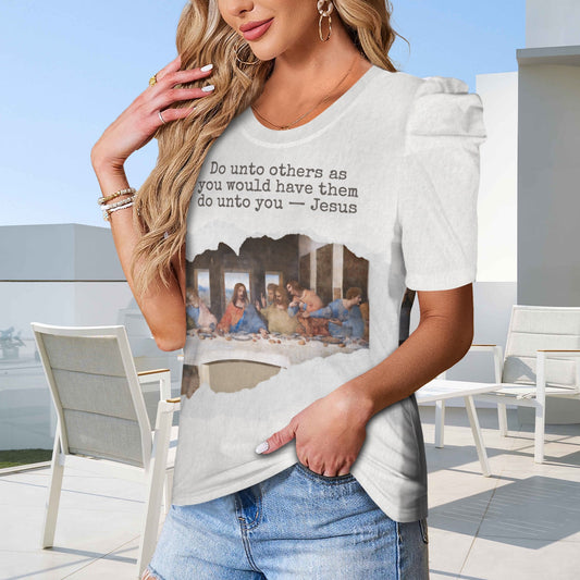 "Do unto Others..." Last Supper Women's Round Neck Puff Sleeve T-Shirts