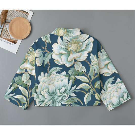 " Jesus Saves" Blue Floral Women's Stylish Cropped Denim-Inspired Cardigan, 100% Cotton, 245GSM | Mid-Sleeves & Pockets