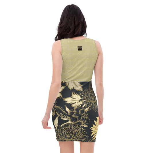 "Blessed Matthew 5:8" Women's Green & Black Floral Midi Dress in Soft Milk Silk Fabric