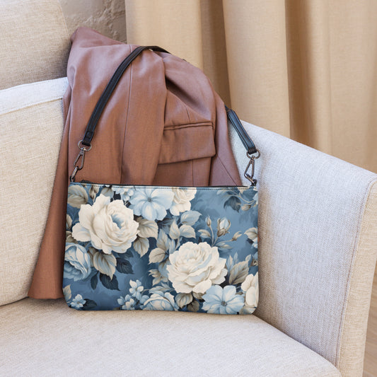 "1 Peter 1:24" Blue Floral Pattern Crossbody bag