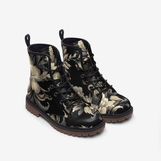 Black & Cream Floral Casual Leather Lightweight boots MT