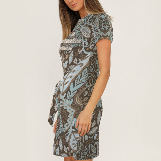 "I am a new creation" Brown Paisley Short Sleeve Wrap Bodycon Ruched Tie Waist Dress