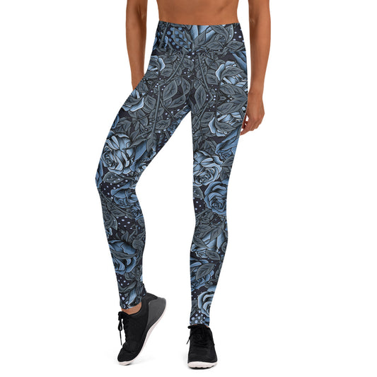 "God's Girl" Blue & Black Floral Yoga Leggings