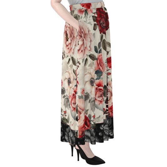 "Jesu is Lord" Red & White Floral Women's Maxi Chiffon Skirts With Lining