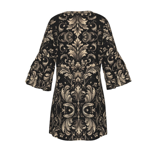 "Jesus Saves" Black & Gold Damask Women's Stacked Ruffle Sleeve Dress