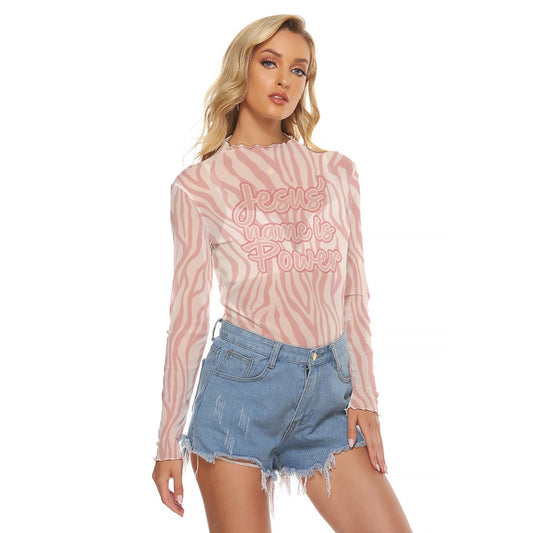 "Jesus Name is Power" Pink Zebra Women's Mesh T-shirt