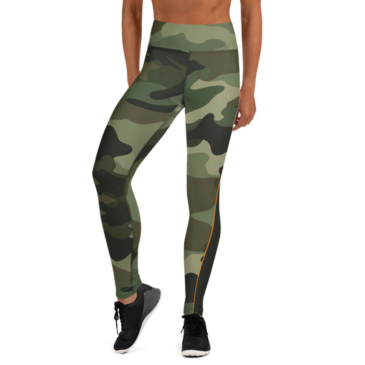 "Jesus is Lord" Green Camo and Orange Christian Yoga Leggings