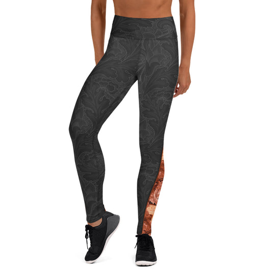 "Jesus Rules" Black & Dark Reddish Brown leaf camo Yoga Leggings
