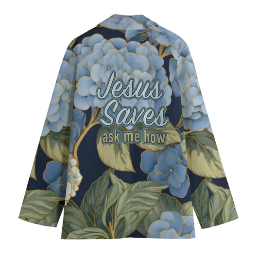 "Jesus Saves ask me how" Blue & Green Floral Women's Leisure Blazer