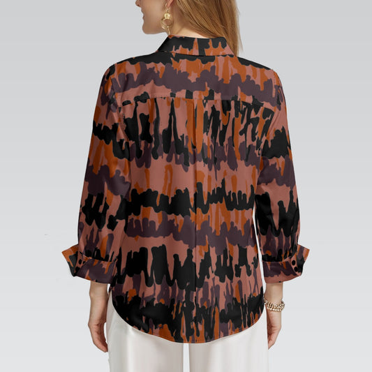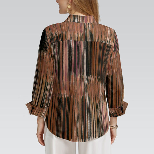 "Repent & Believe" Brown Ikat Stripe Print Women's 3/4 Sleeve Shirt