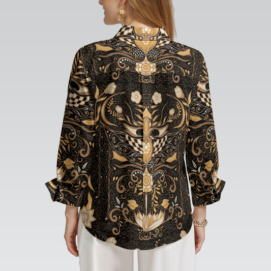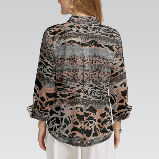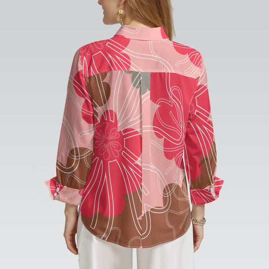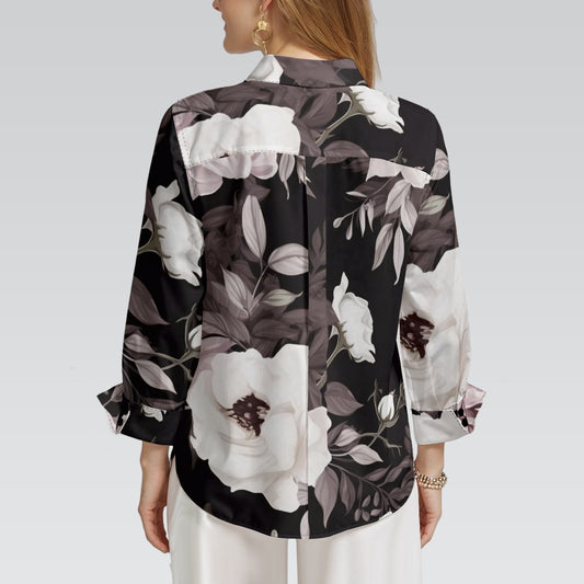 "Repent & Believe" Brown, Beige Floral Print Women's 3/4 Sleeve Shirt