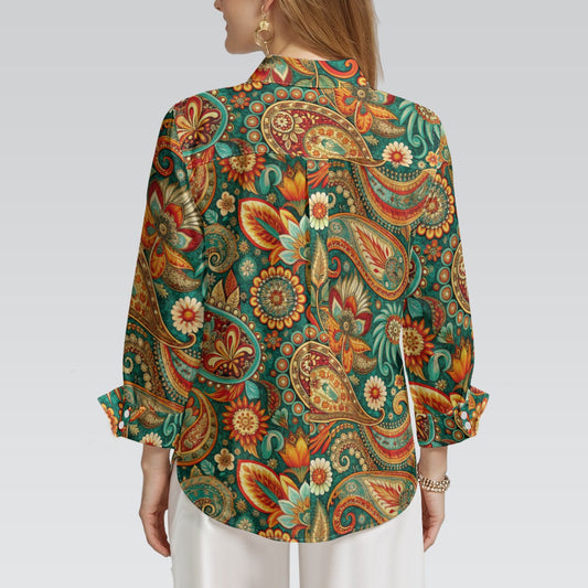 "Repent & believe Green Orange Paisley Print Women's 3/4 Sleeve Shirt
