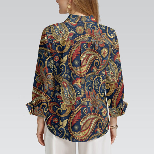 "Repent & Believe" Red & Blue Paisley Floral Print Women's 3/4 Sleeve Shirt