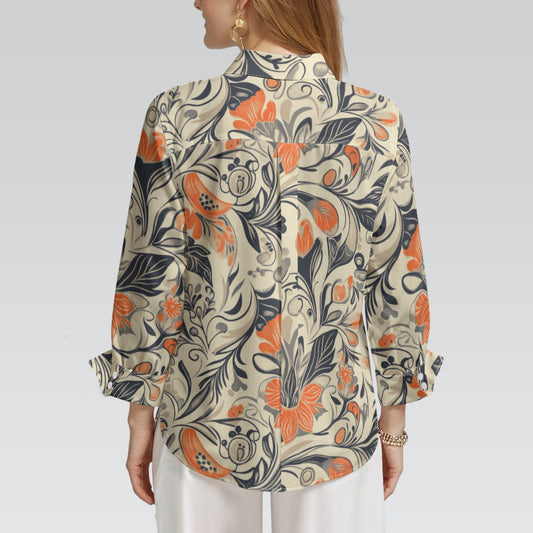 "Repent & Believe Orange, Gray Floral Print Women's 3/4 Sleeve Shirt