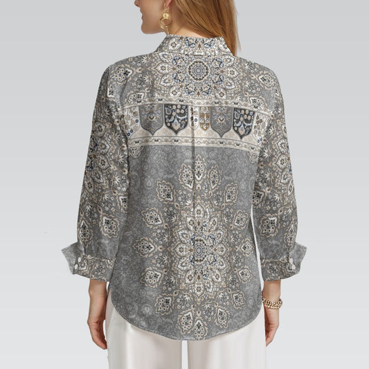 "Repent & Believe" Gray Floral Tapestry Print Women's 3/4 Sleeve Shirt