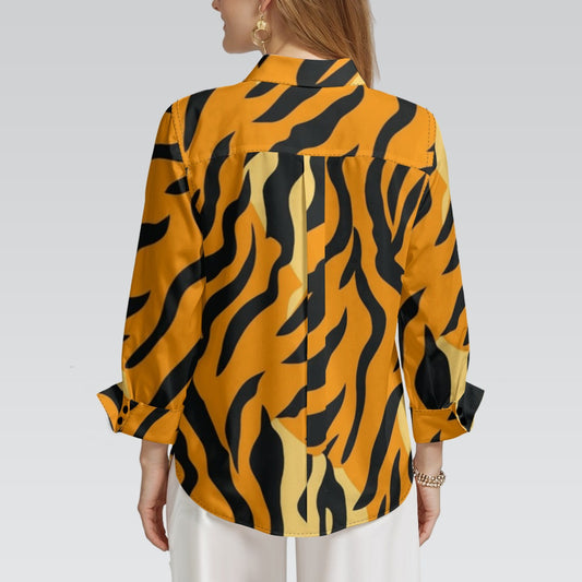 "Repent & Believe" Black & Orange Tiger Stripe Print Women's 3/4 Sleeve Shirt