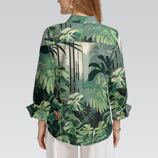 "Repent & Believe"Green Floral Landscape Print Women's 3/4 Sleeve Shirt