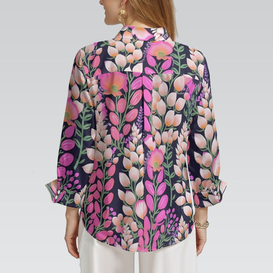 "Repent & Believe" Pink Floral Print Women's 3/4 Sleeve Shirt