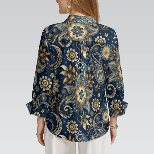 "Repent &Believe" Blue Paisley Print Women's 3/4 Sleeve Shirt