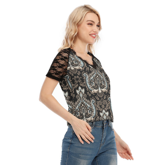 Women's Black Lace V-Neck T-Shirt Tee "I am a new creation"