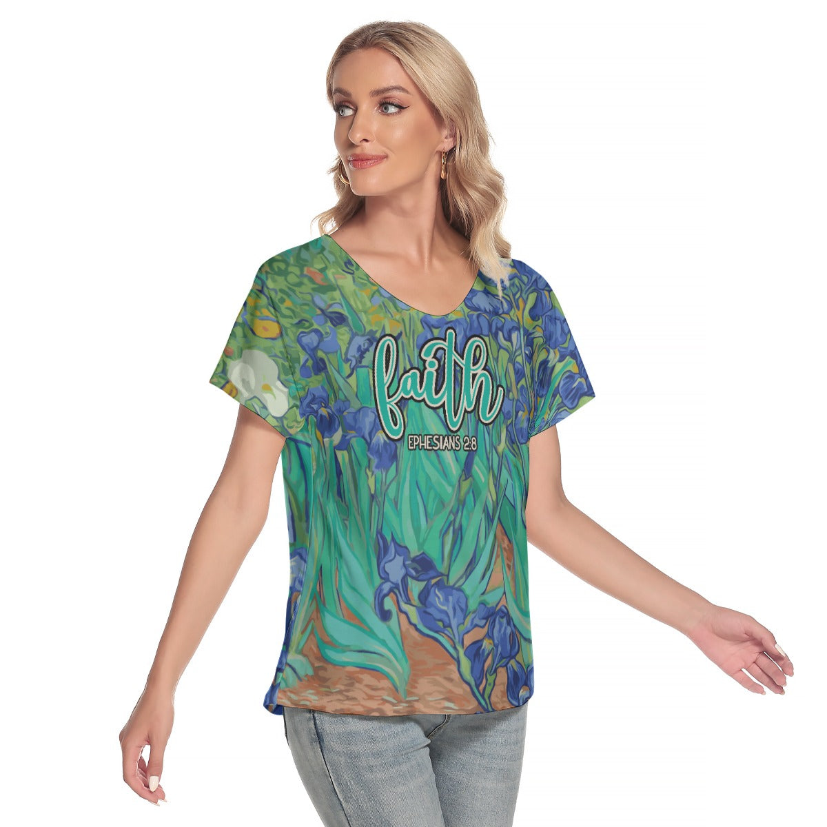 Faith Ephesians Women's V-Neck Short Sleeve T-Shirt - Stylish & Comfortable