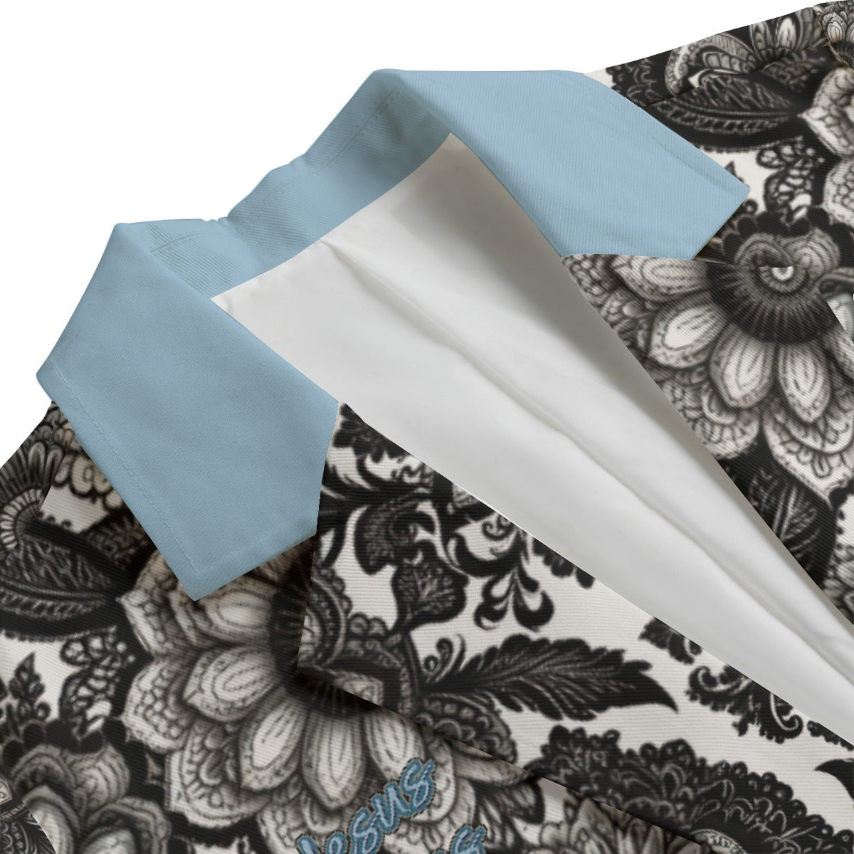 Elevate your casual wardrobe with our trendy women's leisure blazer, designed for both style and comfort. This eye-catching blazer features a striking "Jesus Saves" floral print in classic black and white, making it a perfect choice for office environments, weekend gatherings, church events, or any occasion where you want to express your faith with fashion.