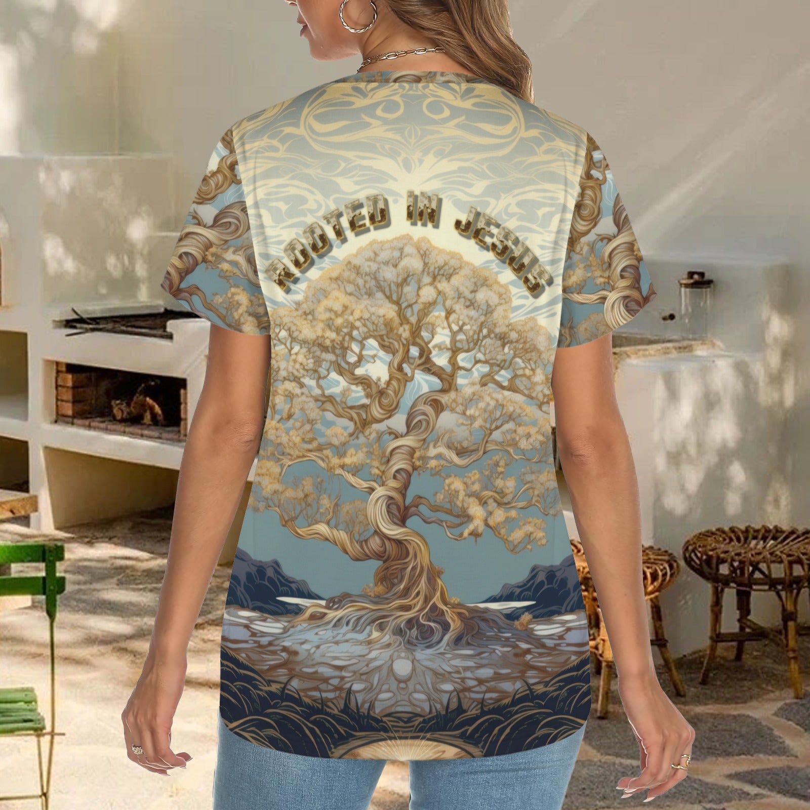 "ROOTED IN JESUS" Women's Crewneck Short Sleeve T Shirt