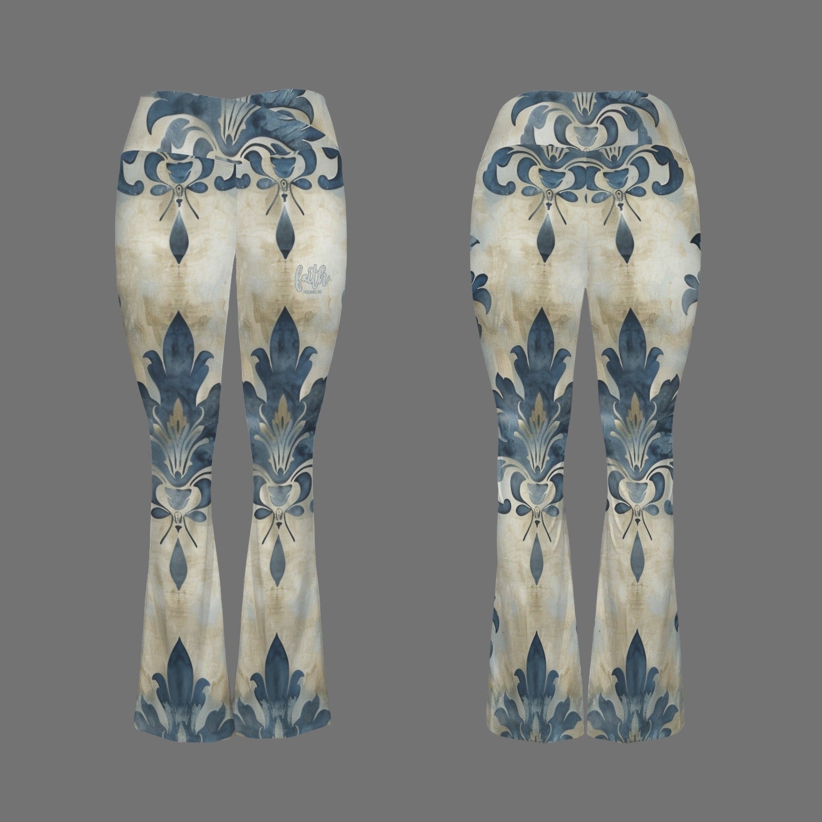 Vintage Pattern "Faith Ephesians 2:8" High Waist Crossover Tummy Control Flare Leggings