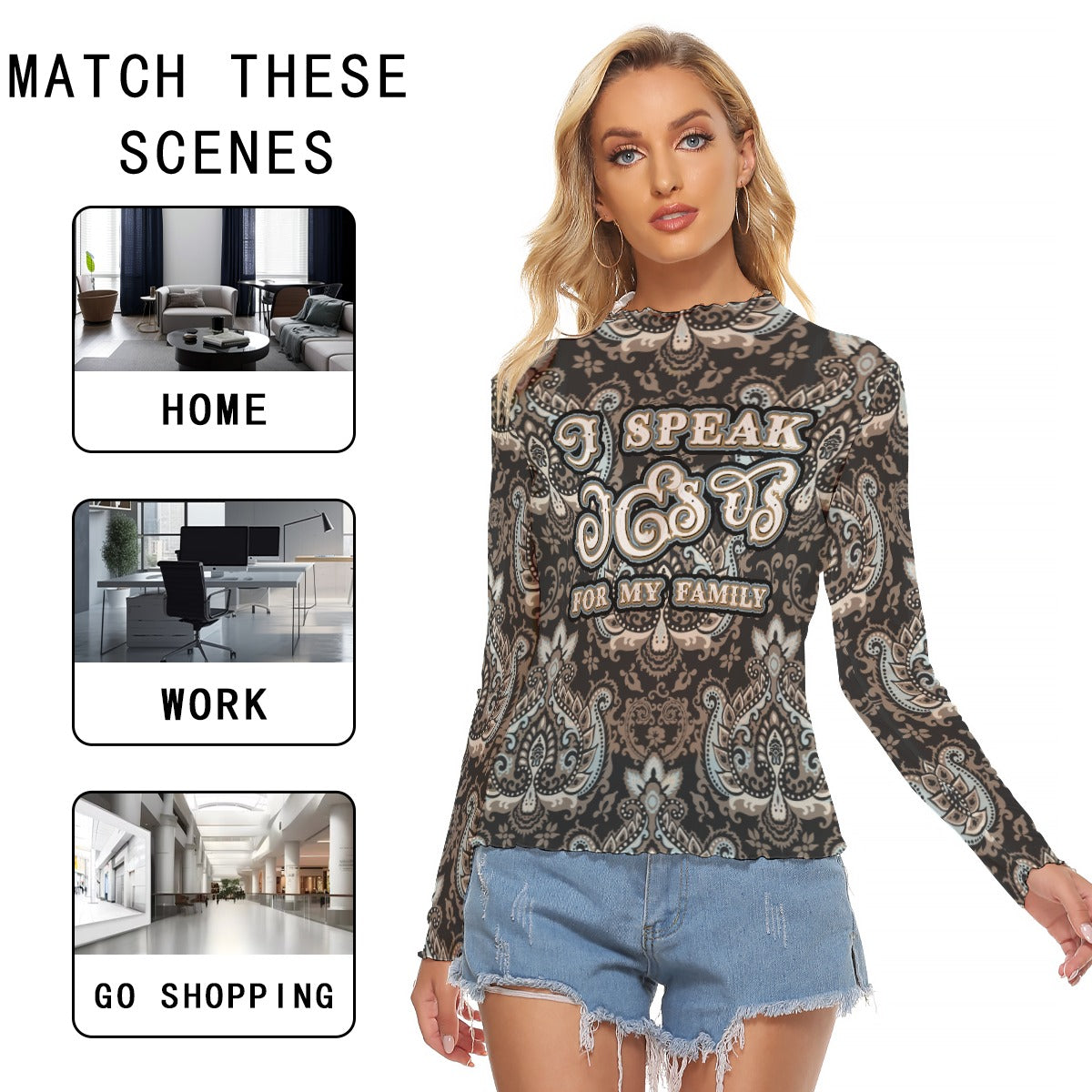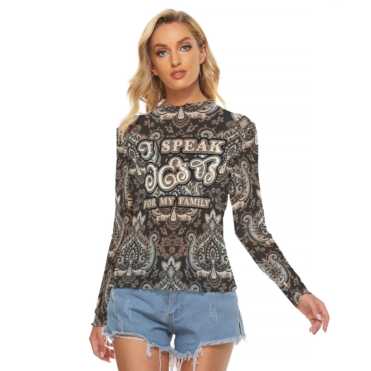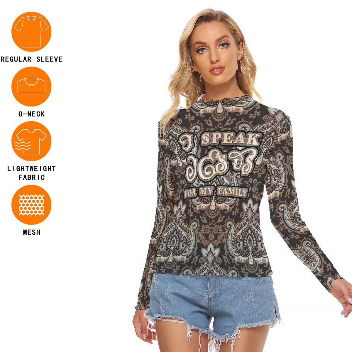 Women's Mesh T-shirt - Long Sleeve Mesh Top-"I Speak Jesus for My Family"